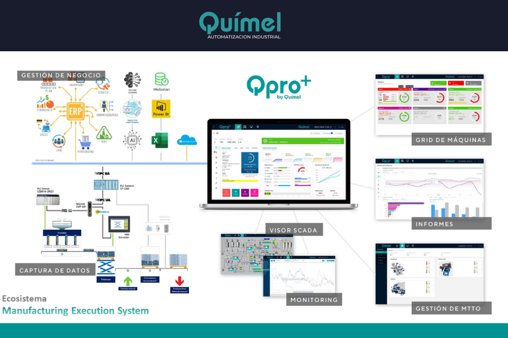 Si busca una solución integral que combine automatización, digitalización y soporte técnico especializado, nuestro equipo está listo para ayudarle. Descubra cómo el software MES Qpro+ puede revolucionar sus operaciones y llevar su planta al siguiente nivel en la era de la Industria 4.0. Contáctenos hoy mismo y permita que Quimel sea su socio en este viaje hacia la excelencia productiva: