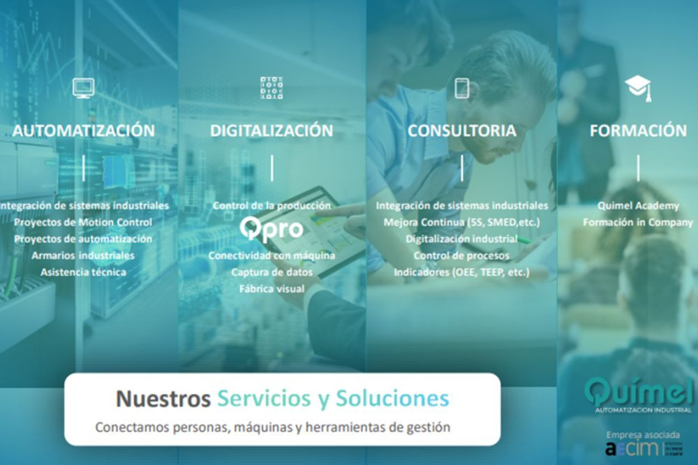Quimel solamente depende de si misma para ejecutar las operaciones indispensables en la implementación del software MES (Sensorica, recableado, reprogramación/ instalación del PLC) Minimizamos el coste de la inversión asociada a la adquisición del software MES QPRO, que unidos a os resultados de una mayor disponibilidad de maquina por nuestros servicios conjuntos de digitalización + automatización constituyen una oferta singular por ofrecer 360º en la implantación de la digitalización.